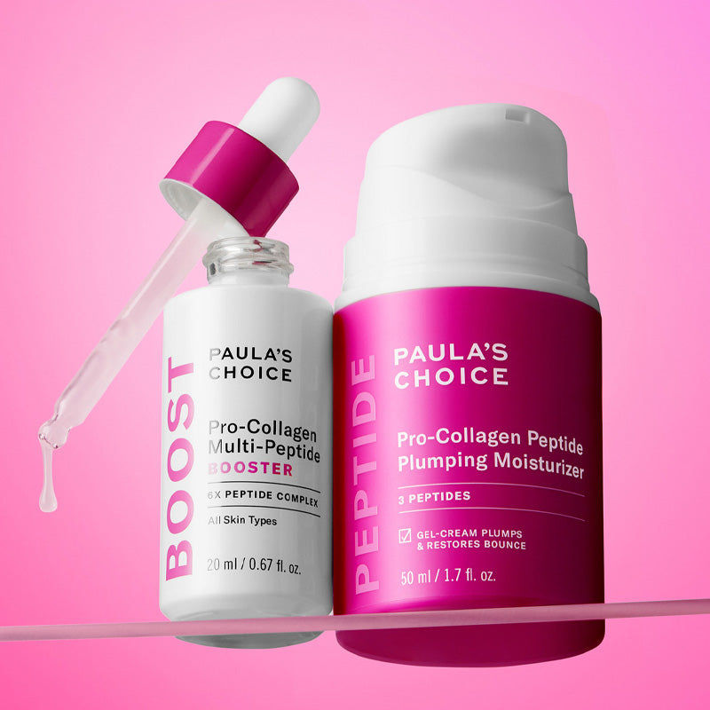 Your daily dose of plump, bouncy skin. This duo pairs the Pro-Collagen Peptide Plumping Moisturizer with the Pro-Collagen Multi-Peptide Booster to deeply hydrate, visibly firm, and strengthen the skin barrier. Together, they help replenish moisture, boost elasticity, and smooth the appearance of fine lines. Perfect for restoring bounce and radiance to dull, dehydrated, or tired-looking skin.